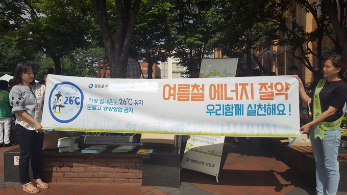 이밖에도 구는 영등포구 서울의약속 시민실천단, 시민단체 회원, 직능단체 등 150여명과 함께 민관 합동으로 상가밀집지역인 구청 사거리에서 오후2시부터 1시간 동안 냉방기 온도 2℃올리기 거리캠페인도 실시한다.