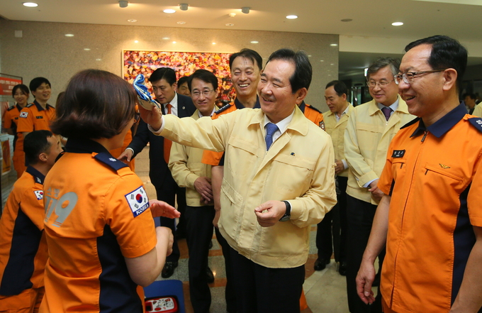 [영등포신문=김용숙 기자] 정세균 국회의장은 23일 오전 국회에서 진행된 '드론테러 및 재난대응 종합훈련'을 참관하고 훈련 참가자들을 격려했다.