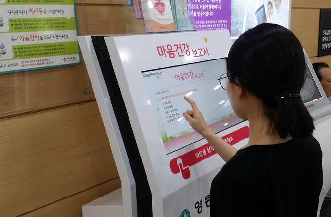 마음건강검진이 필요한 주민과 직장인은 자가 검진을 통해 간단한 방법으로 건강상태를 확인하고, 검진 결과는 즉시 출력도 가능하다.
