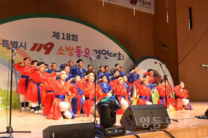 영등포소방서(서장 이귀홍) 초등부 대표로 참가한 서울 영림초 합창단 학생들은 소방동요 2집에 수록된 ‘임금님과 119’를 불렀다.
