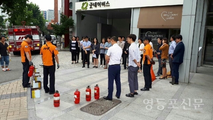 [영등포신문=신예은 기자] 영등포소방서(서장 이귀홍) 현장대응단 3팀 진압대원들은 지난 6일 영등포구 버드나루로 소재 굿네이버스회관을 대상으로 가상화재소방훈련을 실시했다.