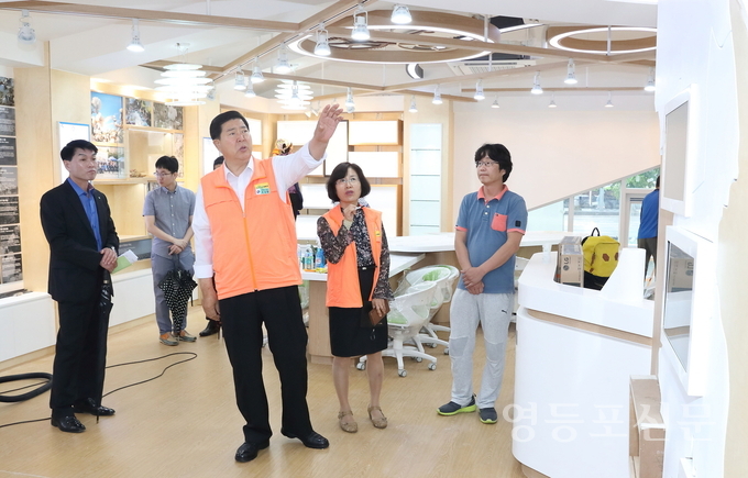 [영등포신문=양혜인 기자] 조길형 영등포구청장이 11일 오후 영등포 관광정보센터 개관을 앞두고 시설을 둘러봤다.