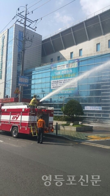 [영등포신문=신예은 기자] 영등포소방서(서장 이귀홍)는 지난 12일 영등포구 신풍로에 위치한 영등포 제1스포츠센터에서 공공기관 소방합동훈련을 실시했다.