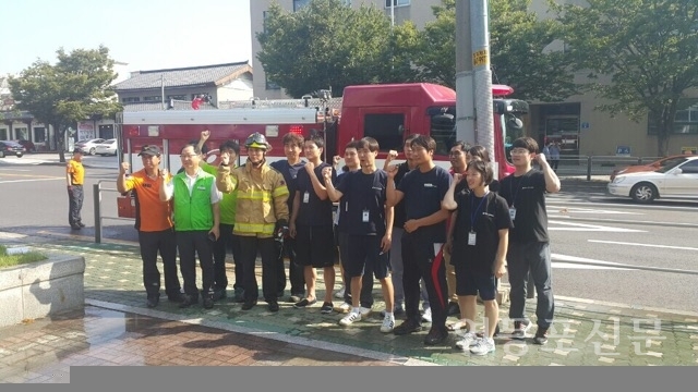 특히 불특정 다수인이 많이 드나드는 스포츠센터의 특성상 화재발생시 대형화재로 번질 수 있기 때문에 자위소방대의 초기진압대응 역할을 강조하며 훈련이 이뤄졌다.