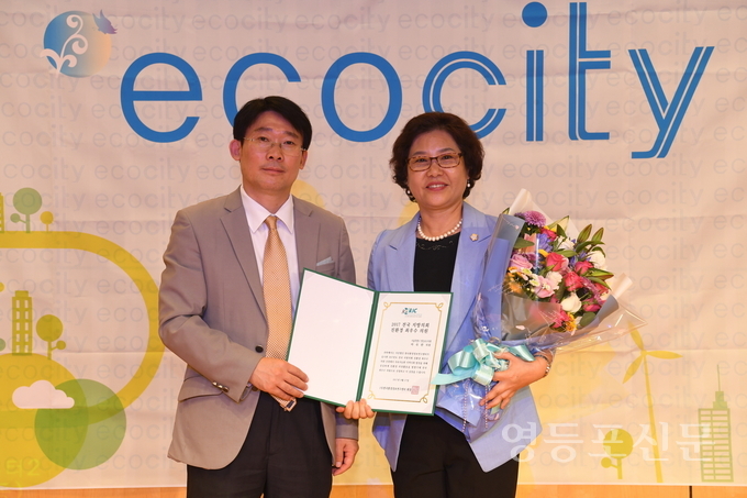 [영등포신문=나재희 기자] 영등포구의회 마숙란 의원이 지난 27일 서울신용보증재단 대강당에서 열린 시상식에서 ‘2017 전국지방의회 친환경 최우수의원’에 선정되는 영예를 안았다.