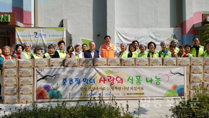 [영등포신문=신예은 기자] 영등포구사회복지협의회(회장 정진원)는 지난 9월 25일~28일 까지 영등포관내 18개동 주민센터에서 민족 최대의 명절인 중추절을 앞두고 푸드마켓 뱅크 장기미이용자와 좋은이웃들 1:1 한가정 결연자 300가구를 선정해 따뜻한 온정의 손길을 전해 정이 넘치는 훈훈한 중추절을 보낼 수 있도록 식품 및 생활용품을 지원해 정서적 외로움과 소외감을 해소하기 위한 활동을 펼쳤다.