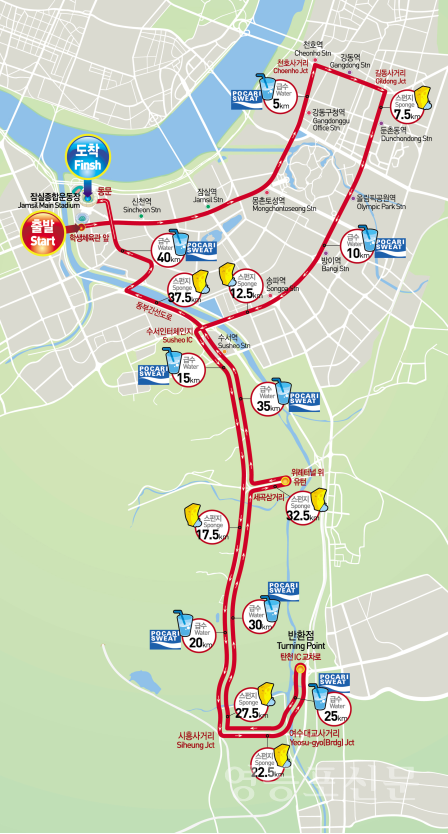 당일 대회구간인 잠실종합운동장과 성남을 오가는 주요 도로변은 07:30부터 13:30까지 단계별로 교통이 통제된다.
