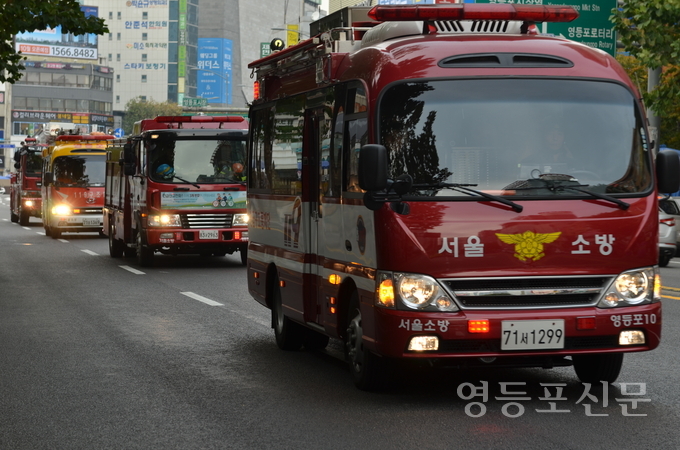 [영등포신문=신예은 기자] 영등포소방서는 ‘11월 불조심 강조의 달’을 맞아 13일 오후 2시 겨울철 화재예방 및 소방차 길 터주기 홍보를 위해 다중밀집지역 등 관내 취약지역을 순회하는 소방차 퍼레이드 행사를 가졌다.