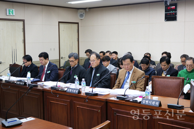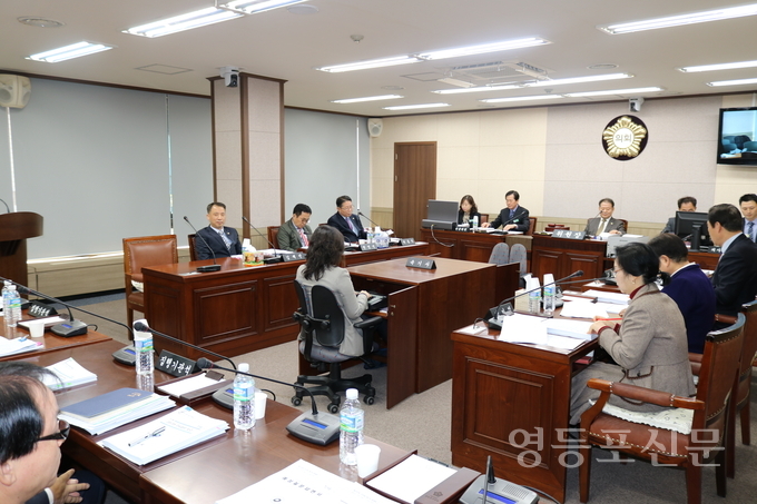 [영등포신문=함창우 기자] 지난 20일 제205회 영등포구의회 정례회가 개회된 가운데 23일 오전10시 의회 1.2소회의실에서 사회건설위원회(위원장 정영출) 소속 상임위원들이 영등포구 보건소와 도시국 업무보고를 받고있다.