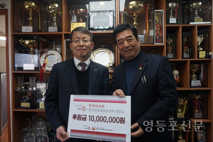 [영등포신문=신예은 기자] 한국마사회 렛츠런문화공감센터 영등포(센터장 이용선)는 최근 서영사랑나눔복지회 직영 구립 영등포구장애인사랑나눔의집에 영등포구 지역 내 저소득 중증장애인을 대상으로 하는 무료급식 지원사업 진행을 위한 기부금 일천만원을 전달했다.