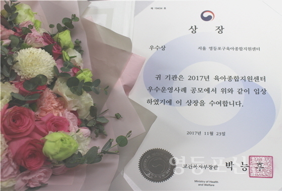 이번 수상을 계기로 영등포구육아종합지원센터에서는 더욱 다양한 프로그램 개발, 보급하여 어린이집사업과 가정양육사업을 지원하고, 확장하는데 노력할 것이다.
