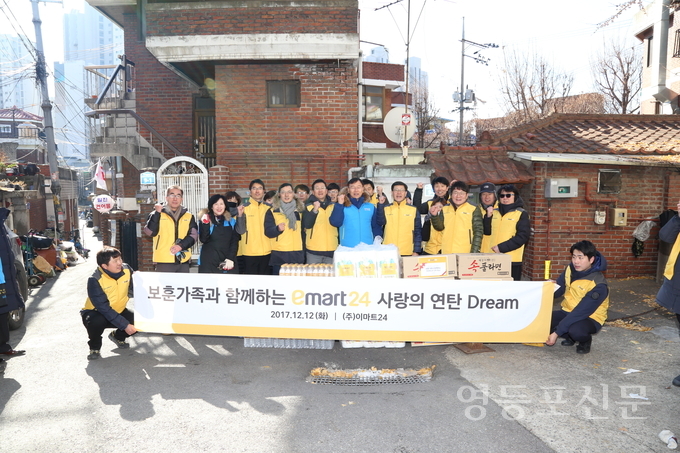 이번 연탄나눔 봉사활동은 동절기를 맞아 저소득 보훈가족 분들이 추운겨울을 조금이라도 따뜻하게 보내실 수 있도록 돕기 위해 이마트24에서 후원했으며 22일까지 서울지역에 거주하시는 보훈가족 16가구에 연탄을 지원하고 간편식, 생활용품 등을 담은 선물 꾸러미를 전달한다.