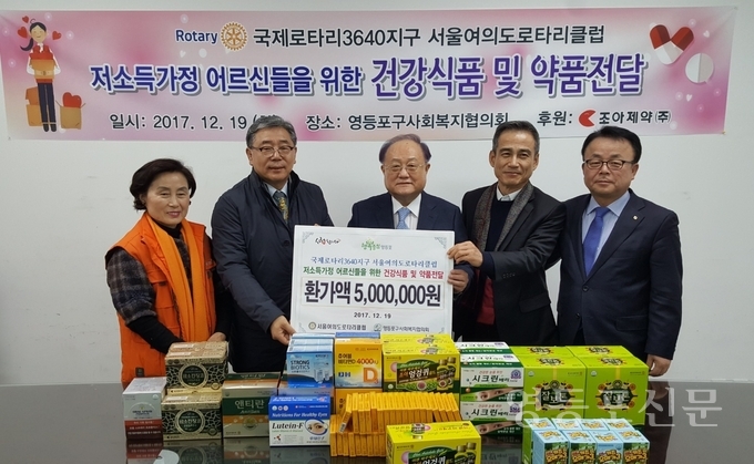 [영등포신문=함창우 기자] 여의도로타리클럽(회장 김재원)이 19일 영등포구사회복지협의회(회장 정진원)에 방문하여 후원금․품 전달식을 진행 하였다.