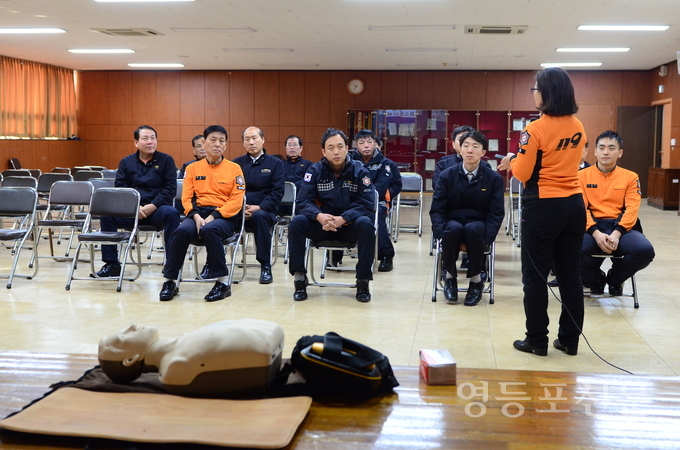 [영등포신문=신예은 기자] 영등포소방서는 22일 오전 소방서 대강당에서 전 직원을 대상으로 심폐소생술 교육 및 자동심장충격기 사용법 전문 교육을 실시했다고 전했다.