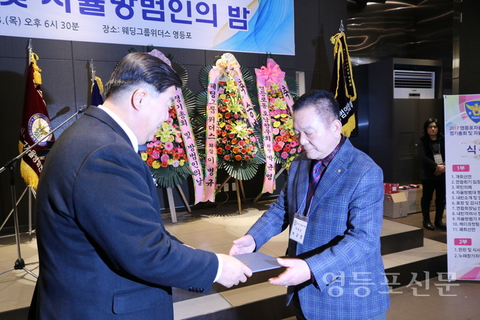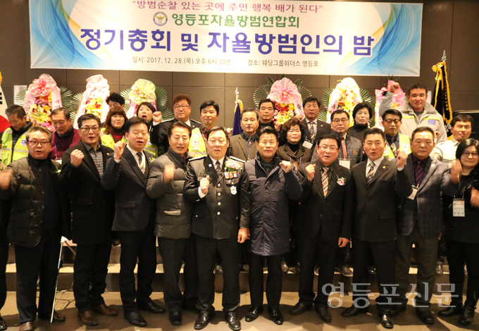 [영등포신문=함창우 기자] 서울시영등포구자울방범연합회(회장 서천열)는 지난 28일 영등포동 소재 웨딩그룹 위더스 5층 연회장에서 2017년도 '정기총회 및 방범인의 밤' 행사를 개최했다.