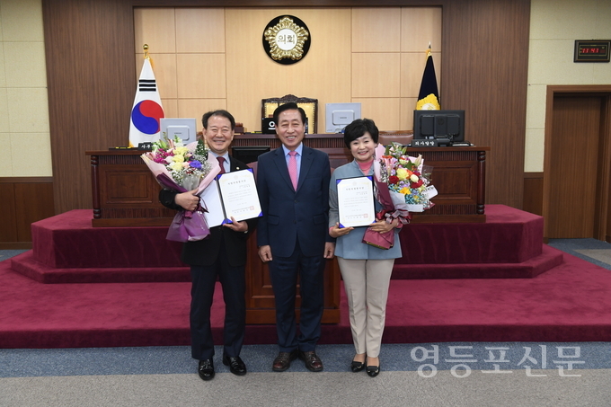 [영등포신문=함창우 기자] 영등포구의회 김길자 행정위원장과 정영출 사회건설위원장이 전국시군자치구의장협의회로부터 ‘지방의정봉사상’을 수상하는 영예를 안았다.