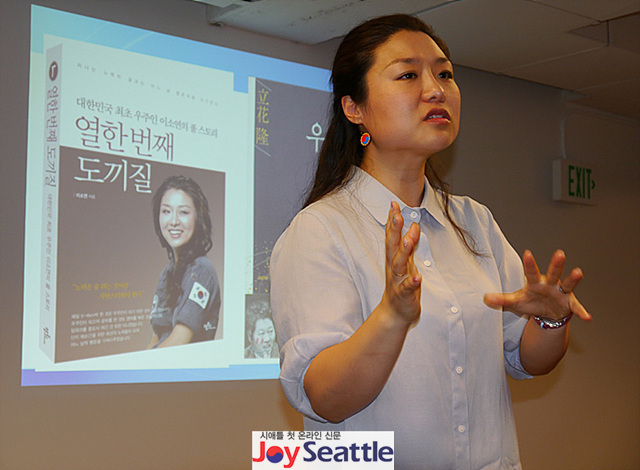 이씨는 2015년 6월 UW 북소리 강연을 통해 "내가 행복해야 남을 도울 수 있다"며 그동안 우주인으로 살아온 삶이 너무 힘들었다고 털어놓고 "더 큰 세상을 보기 위해 한국을 떠났다. 힘든 생활을 겪어보면 더 좋은 일을 할 수 있을 것으로 생각한다"고 밝힌바 있다. /제공: 조이시애틀뉴스