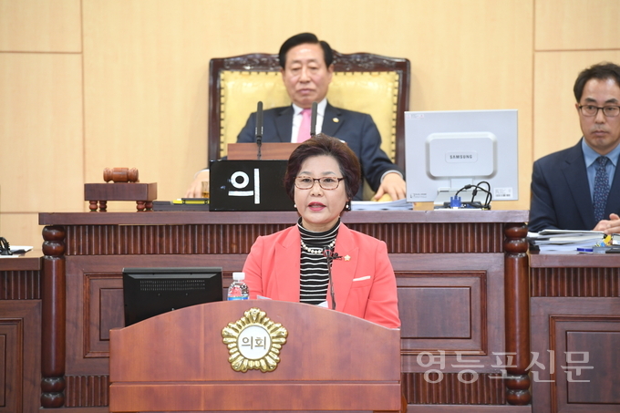 [영등포신문=함창우 기자] 영등포구의회 마숙란 의원(비례대표)이 지난 2월 23일 열린 제206회 임시회 제1차 본회의에서 '거주자 우선 주차구역 운영의 문제점'과 '자치분권개헌 천만인 서명운동'에 대해 5분 발언을 했다.