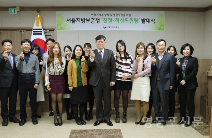 [영등포신문=함창우 기자] 서울지방보훈청(청장 오진영)은 12일 오전 11시 민원서비스 향상 및 열린 혁신을 위한 기관 내 토론 모임인 '친절·혁신드림팀'의 발대식을 가졌다.