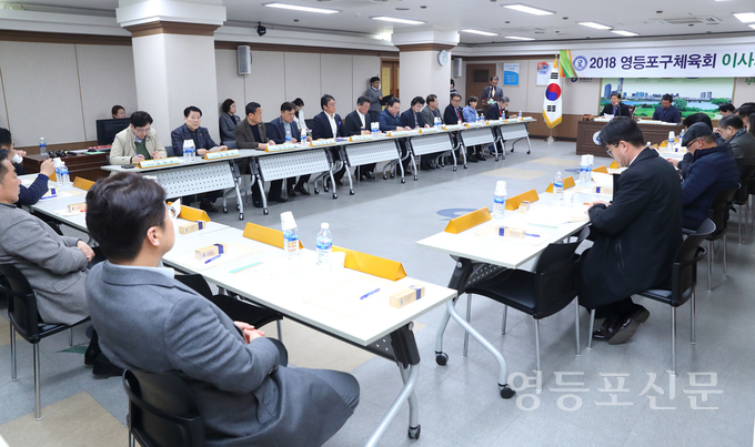 [영등포신문=신예은 기자]조길형 구청장은 12일 오후 5시 구청 기획상황실에서 열린 ‘2018년 영등포구체육회 제2차 이사회’에 참석해 “체육활동을 생활화해 구민건강과 삶의 질을 높일 수 있도록 지역 내 체육환경 개선에 최선을 다하겠다.”고 전했다.