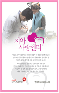 영등포구치과의사회 회원 30여명이 매주 순번제로 치아사랑센터에서 무료로 진료활동을 하며, 건강보험공단 직원 및 자원봉사자 등이 함께 봉사활동에 참여한다.