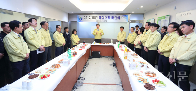 [영등포신문=신예은 기자] 조길형 구청장은 15일 오후 5시 구청 5층 방재종합상황실에서 열린‘제설대책본부 해단식’에 참석해 “지난해 11월부터 폭설에 대비한 적극적인 대응으로 주민 불편을 최소화할 수 있었다.”며 “앞으로도 기후변화에 적절히 대응할 수 있도록 매뉴얼 정비 등 주민 안전을 위해 최선을 다해달라.”고 말했다.