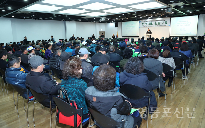[영등포신문=함창우 기자] 조길형 구청장은 20일 오전 10시 40분 영등포아트홀 전시실에서 열린 상반기 공공일자리사업 안전교육에 참석해 안전사고 예방에 대한 주의를 당부했다. 오후 3시에는 구청 직소민원실에서 한국매니페스토실천본부와 ‘4050세대 은퇴자사무실 운영을 위한 상호협력 업무협약’을 맺었다.