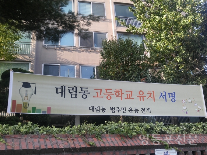 영등포구 전체 9개 고등학교(평균 3만명당 1개교)가 있는 반면 인구 8만 명인 대림동에는 고등학교가 1개교도 없는 열악한 교육환경으로 인해. 대림동에 거주하는 초.중학교 학생 3천 2백여 명의 학생이 졸업 후 타 지역으로 고등학교를 진학함으로써, 대림동에서 타 지역으로 거주지 자체를 옮기는 등 지역 균형 발전에 심각한 저해 요인으로 작용하고 있다.