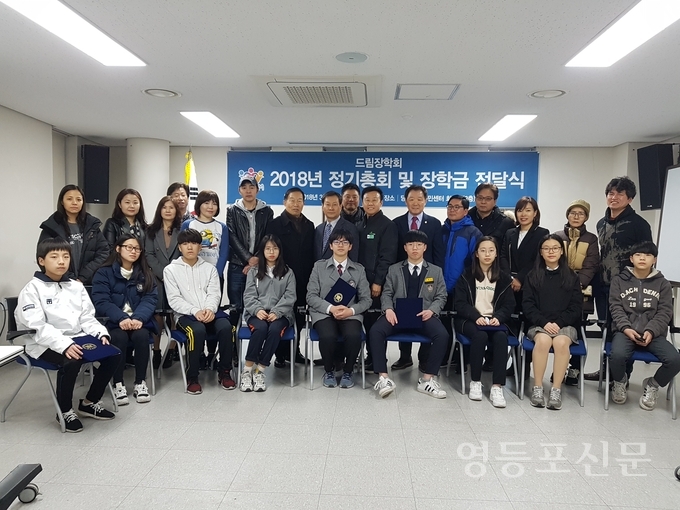 [영등포신문=신예은 기자] 드림장학회(회장 이현희)는 21일 오후 6시 당산2동 주민센터 3층 대회의실에서 김용범 고문(현 영등포구의회 운영위원장)과 유옥준 동장을 비롯한 장학회 이사들이 참석한 가운데 창립 제4주년을 맞이하여 ‘2018년 정기총회 및 장학금 전달식’을 갖었다.