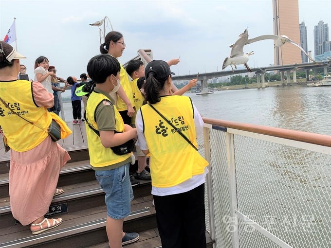 이번 행사는 구와 ㈜이랜드크루즈가 소외계층의 문화 체험을 확대하기 위해 체결한 사회공헌 협약에 따라 마련됐다. 행사에 참여한 60여 명의 가족은 한강 유람선을 타며 인어공주, 알라딘 등 영화 OST와 최신 가요의 재즈 공연을 감상하고, 갈매기 먹이 주기도 체험했다.