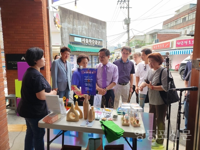 최 구청장은 문래창작촌 예술인과 공방 장인이 만든 생활소품을 구경하며 주민들과 담소를 나누는 등 소통하는 시간을 가졌다.