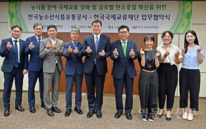 [영등포신문=이천용 기자] 한국농수산식품유통공사(사장 김춘진)는 지난 20일 서울 양재동 aT센터에서 한국국제교류재단(이사장 김기환)과 농수산식품 분야 국제교류 강화 및 글로벌 탄소중립 확산을 위한 업무협약을 체결했다.