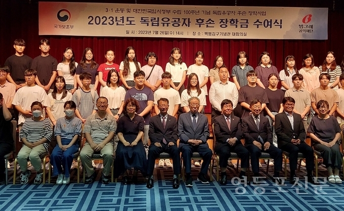 [영등포신문=이천용 기자] 국가보훈부(장관 박민식)는 26일 오후 2시, 백범김구기념관(대회의실)에서 빙그레공익재단과 함께 독립유공자 후손에게 장학금을 수여하는 행사를 진행했다고 밝혔다.