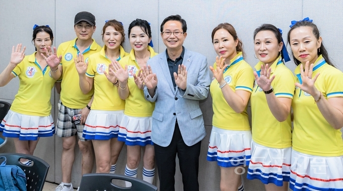 [영등포신문=이천용 기자] 최호권 구청장이 27일 오후, 신길7동주민센터 대회의실에서 열린 ‘월남전참전자회 국민건강댄조’ 행사에 참석했다.