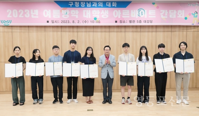 [영등포신문=이천용 기자] 영등포구는 2일 오전 구청 별관 5층 대강당에서 최호권 구청장과 여름방학 대학생 아르바이트 참여자 90명이 함께하는 ‘2023 여름방학 대학생 간담회’를 개최했다.