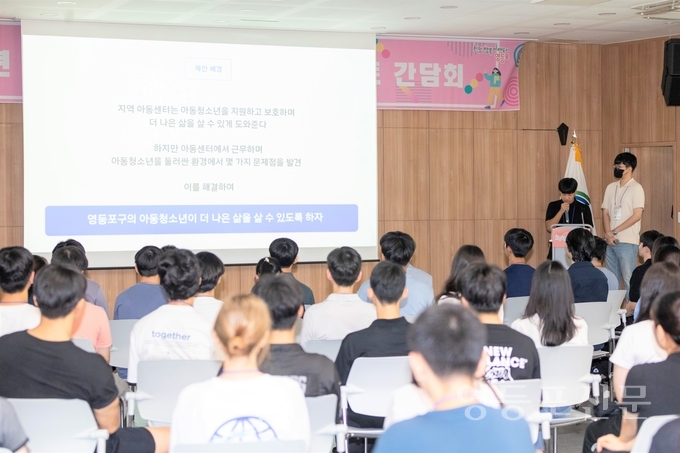 참여자들은 간담회에 앞서 지난 7월 26일 ‘정책 제안 발표회’를 가졌다. ‘우리가 만드는 영등포구 정책’을 주제로 12개조가 5분 이내 자유 발표를 진행했다. 그 결과, ▲우회전 시 일시정지 도로의 안착을 위한 방안(대상) ▲영등포구 느린학습‧학습장애 아동 지원 정책 ‘희망날개 프로젝트’(최우수상) ▲지역아동센터 개선 방안 ‘아이들이 안전한 영등포’(우수상)가 우수 제안으로 선정됐으며, 이날 간담회에서 우수 정책 제안 상장 수여와 발표가 이어졌다.