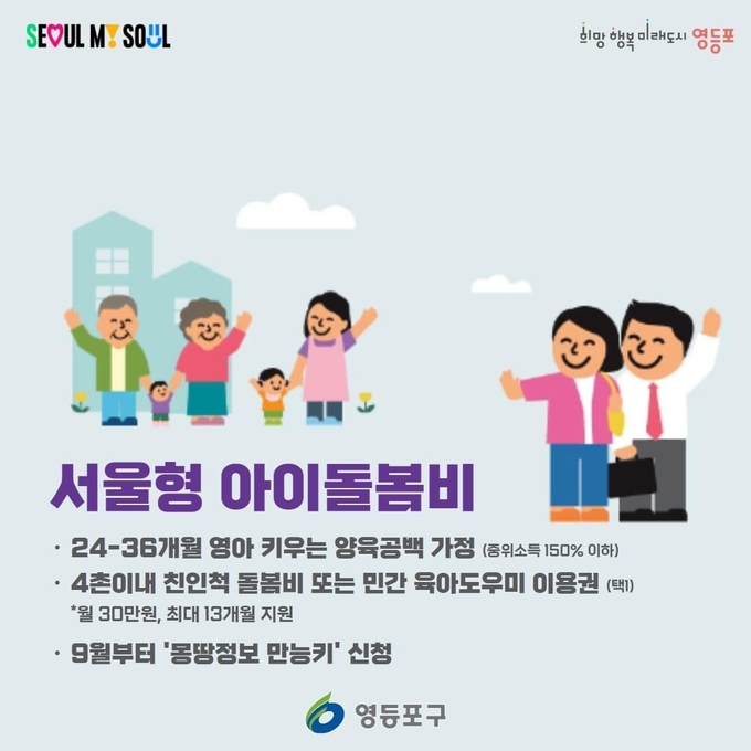 최호권 구청장은 “서울형 아이돌봄비는 양육공백 가정을 실질적으로 지원하기 위해 서울시와 함께 추진하는 사업이다. 양육 부담을 줄이고 조부모 등의 돌봄 노동 가치를 높이는 계기로 그 의미가 크다”며 “앞으로도 아이 키우기 좋은 영등포를 위해 돌봄 인프라 확대 등 양육 친화적 환경을 조성하는 데 최선을 다하겠다”고 전했다.