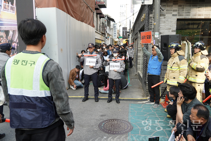 시‧구 합동 현장점검에 이어 같은 장소에서 오 시장이 참관한 가운데 인파감지 시스템을 활용한 유관기관 합동 실전 대응훈련도 실시됐다. 이번 훈련은 서울시, 광진구 외에도 광진경찰서, 광진소방서, 한국인터넷진흥원, 자율방재단, 대학생 등 다양한 기관과 참여자가 함께하는 ‘시민 참여형 훈련’으로 진행됐다.