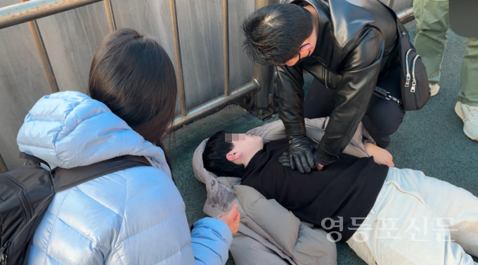 남성은 숨을 제대로 쉬지 못했고, 발작 증세를 일으키고 있었다. 이를 발견한 한 여성이 즉시 119에 신고했고, 그곳을 지나던 사람들에게 도움을 요청했다.