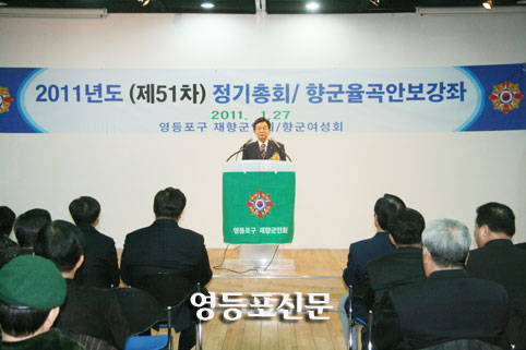 영등포구 재향군인회(회장 최진호)는 지난 27일 영등포아트홀 전시실에서 ‘제51차 정기총회 및 율곡안보강좌’를 열고 향군건설을 위한 노력을 다짐했다.