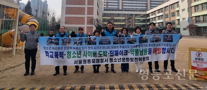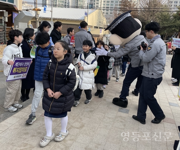 [영등포신문=관리자 기자] 서울영등포경찰서 청소년문화발전위원회(회장 김광규)는 5일 새학기를 맞아 1,200여 명이 학습하는 문래초등학교 등굣길에서 학생들을 응원하고 학교폭력 예방 캠페인을 실시했다.
