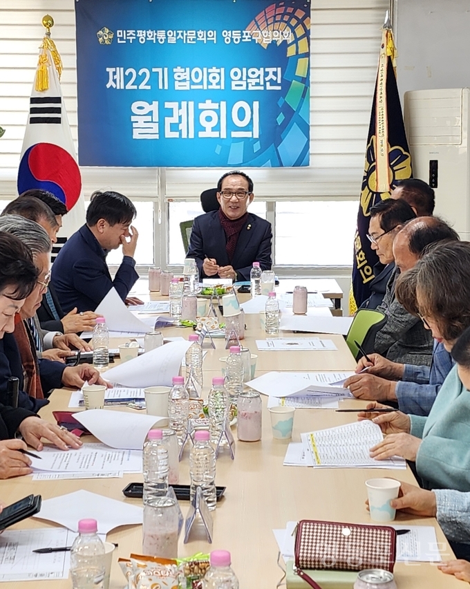 [영등포신문=한미령 편집자문위원] 민주평화통일자문회의 영등포구협의회(회장 허준영)는 지난 7일, 협의회 사무실에서 제22기 임원진 5차 월례회의 개최했다.