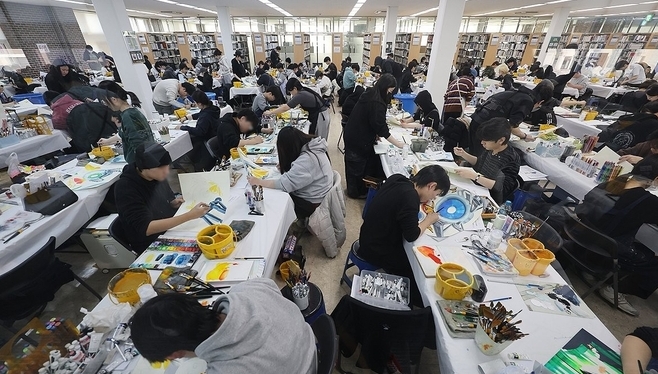 [영등포신문=신민수 기자] 11일 노원구 삼육대학교에서 열린 '2026학년도 정시모집 및 편입학 아트앤디자인학과 미술 실기고사'에서 수험생들이 고사를 치르고 있다.