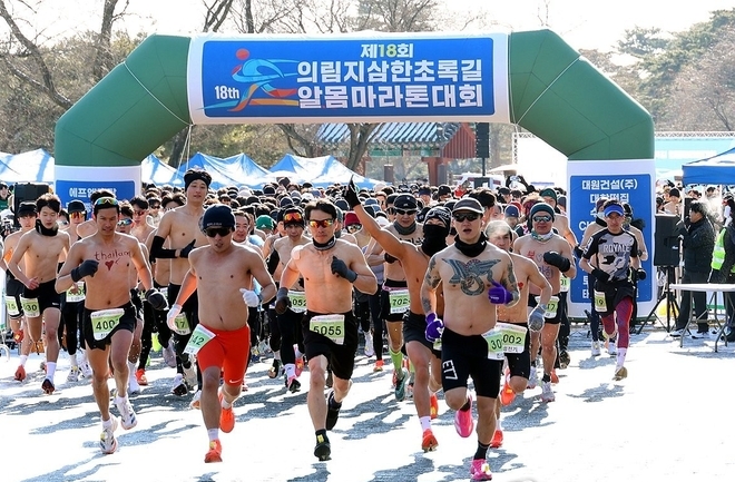 [영등포신문=이천용 기자] 11일 오전 충북 제천시 의림지와 삼한초록길 일원에서 열린 '제18회 제천 의림지 삼한초록길 알몸마라톤대회' 참가자들이 출발선을 뛰쳐나가고 있다.