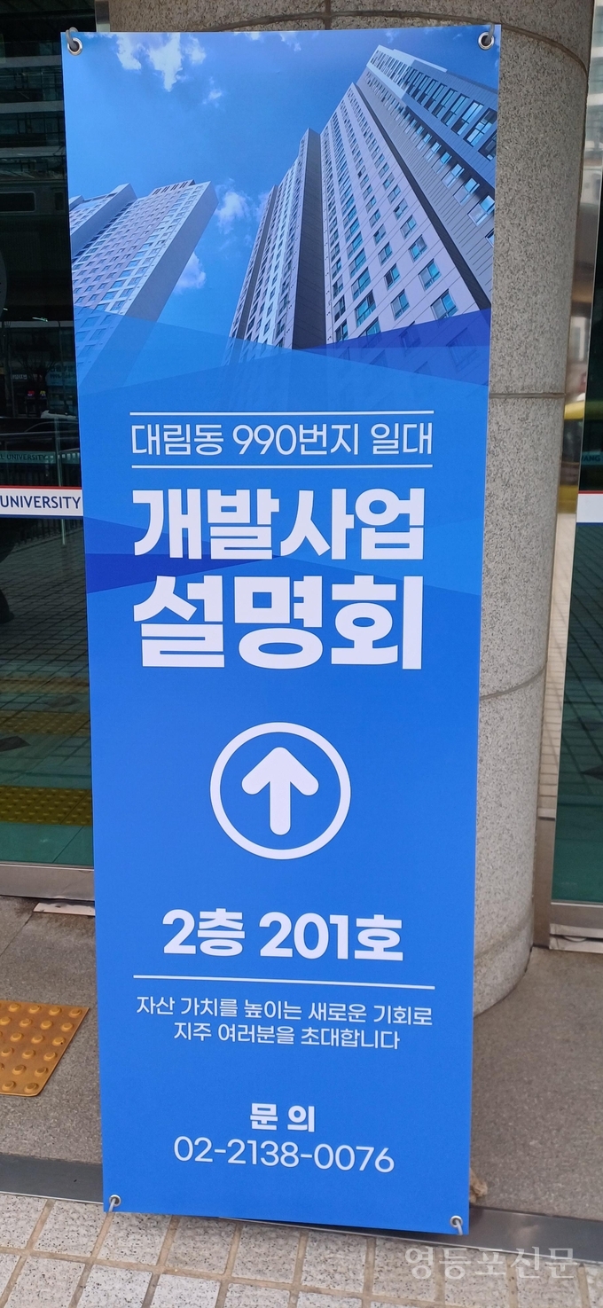 [영등포신문=김경진 객원기자] 영등포구 대림2동 990번지 일대 개발사업 설명회가 토요일인 14일 오후 원광디지털대학교 강당에서 김지향 서울시의원을 비롯해 영등포구의회 양송이(행정위원장).유승용.이성수 의원, 이재향 대림2동 주민자치회장, 가칭 대림지역주택조합 고대헌 추진위원장, 지역 주민들이 참석한 가운데 열렸다.
