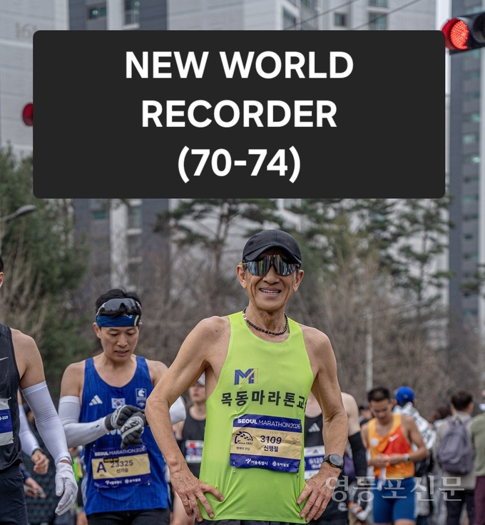 [영등포신문=신민수 기자] 목동마라톤교실 신행철 씨(72세, 사업)가 지난 15일 열린 서울마라톤 대회에서 14번째 Sub-3(써브쓰리)를 이뤄내면서 70-74세 세계기록 보유자가 됐다.