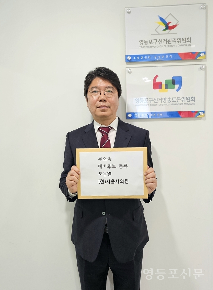 [영등포신문=이천용 기자] 도문열 서울시의원(영등포3, 여의도,신길1․4․5․7동)은 지난 24일 국민의힘 공천 파행과 불공정에 맞서 무소속으로 주민 여러분의 직접 선택을 받고자 예비후보등록을 마쳤다고 밝혔다.