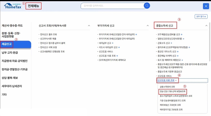 공공기관 간 정보 공유로 보험료 납부 증빙 절차가 간소화 되어, 종합소득세 신고 대상자는 5월 1일부터 국세청 홈택스(www.hometax.go.kr) 또는 손택스(앱)를 통해 본인의 4대 사회보험료 납부내역을 확인할 수 있다.
