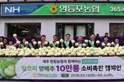 [영등포신문=변윤수 기자] 영등포농협(조합장 백호)은 4월 14일부터 30일까지 제주 한림농협 ‘달코미 양배추’ 10만통을 판매하는 소비촉진 캠페인을 실시한다. 이번 캠페인은 최근 양배추 재배면적 확대와 생산량 증가로 공급과잉이 심화돼 양배추 값이 폭락하고 일부 산지에서는 밭을 갈아엎는 폐기까지 발생하는 상황에서 산지 농가의 어려움을 함께 나누고 수급 안정을 도모하기 위해 마련됐다. 17일에는 김주양 농협경제지주 농업경제대표이사를 비롯해 차성준 한림농협 조합장과 맹석인 서울본부장이 영등포농협 판매 현장에 방문해 상생 협력 의지를 다졌다. 영등포농협은 하나로마트 11개 매장뿐만 아니라 관내 17개 금융점포까지 판매 거점을 확대해 전 임직원이 동참하는 전사적인 소비 촉진에 나선다. 제주 한림농협 산지에서부터 수확·선별된 양배추는 5톤 윙바디 트럭 13대 규모(총 200파레트)로 영등포농협 영농자재판매장에 집하된 후, 관내 하나로마트 및 금융점포로 공급돼 일괄 판매된다. 이를 통해 산지부터 도심까지 신선도를 유지하며 안정적인 공급 체계를 갖췄다. 달코미 양배추는 제주 한림농협이 4년간 시험재배를 거쳐 상품화한 미니 양배추로 12~14브릭스(Brix)로 당도가 높고