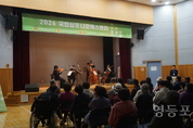 [영등포신문=변윤수 기자] 대한불교조계종사회복지재단이 위탁 운영하는 서울시립영등포장애인복지관(관장 최종환)은 국립심포니 오케스트라와 함께하는 사회공헌 음악회 ‘동행’을 지난 3월 17일 복지관 대강당에서 개최하고 성황리에 마무리했다고 밝혔다. 이번 음악회는 국립심포니오케스트라의 사회공헌 활동의 일환으로 마련된 공연으로, 장애인 당사자와 지역주민에게 문화예술 향유 기회를 제공하고 정서적 안정과 사회적 소속감을 높이기 위해 기획됐다. 이날 공연에는 국립심포니오케스트라 연주자들이 참여해 클래식과 영화음악, 재즈 등 다양한 장르의 음악을 선보였다. 친숙하면서도 다채로운 프로그램으로 구성된 이번 공연은 복지관 이용자와 지역주민들의 큰 호응을 얻었다. 이번 공연은 복지관 대강당에서 진행되어 장애인과 비장애인이 함께 문화예술을 경험하고 소통할 수 있는 자리로 마련됐다는 점에서 의미를 더했다. 인상적인 장면은 첼로의 선율을 따라 발달장애인분이 음을 따라 부르는 가운데, 고요하지만 노래할 수 있는 열린 연주회가 되어 관객들은 서로 공감하고 어울리는 시간을 보내며 문화예술이 주는 치유와 위로를 함께 나눴다. 서울시립영등포장애인복지관은 지역사회 문화 접근성 향상을 위해 다양한
